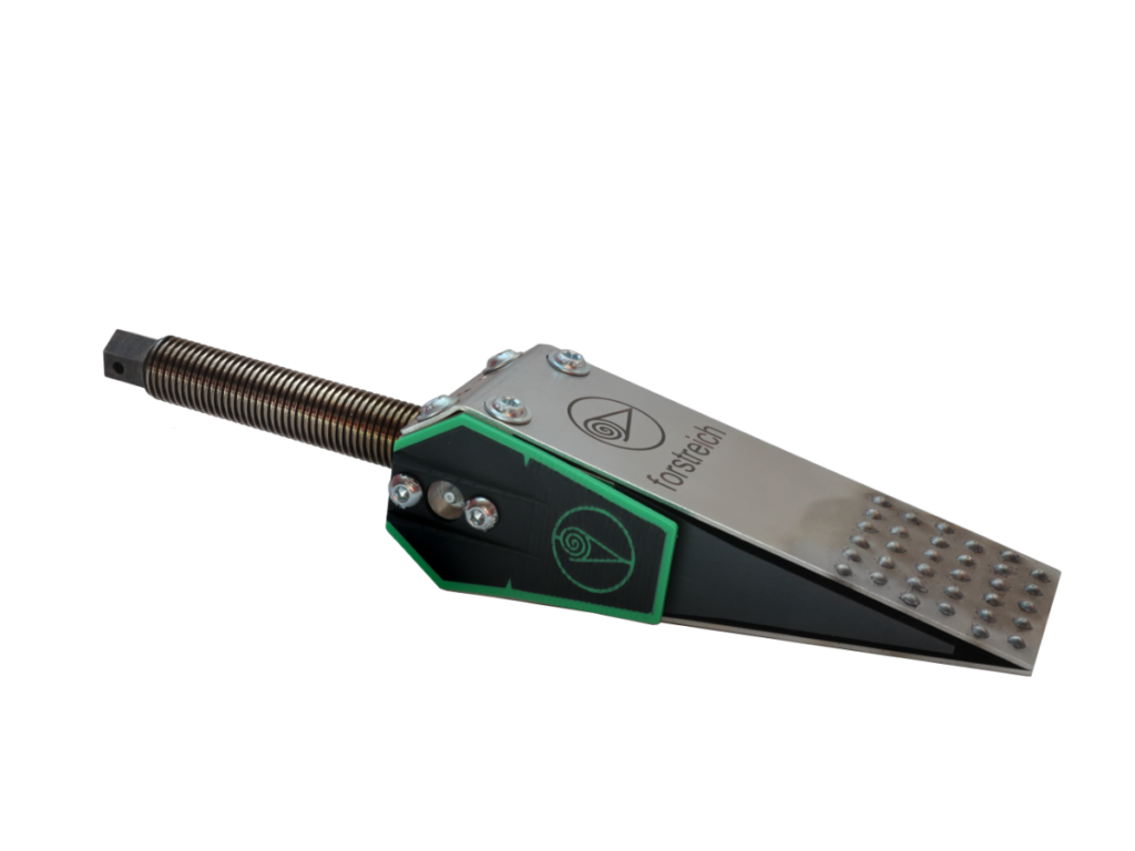 フォルストライヒ社は、2014年に世界初の「ラチェット式伐倒くさび」を開発。2017年には電動インパクトレンチ対応のモデルへと進化させ、この分野のパイオニアとなりました。現在では他社からも同様の製品が発売されるなど、効率的で安全な伐採に欠かせない道具として、世界各地の現場へ広がっています。